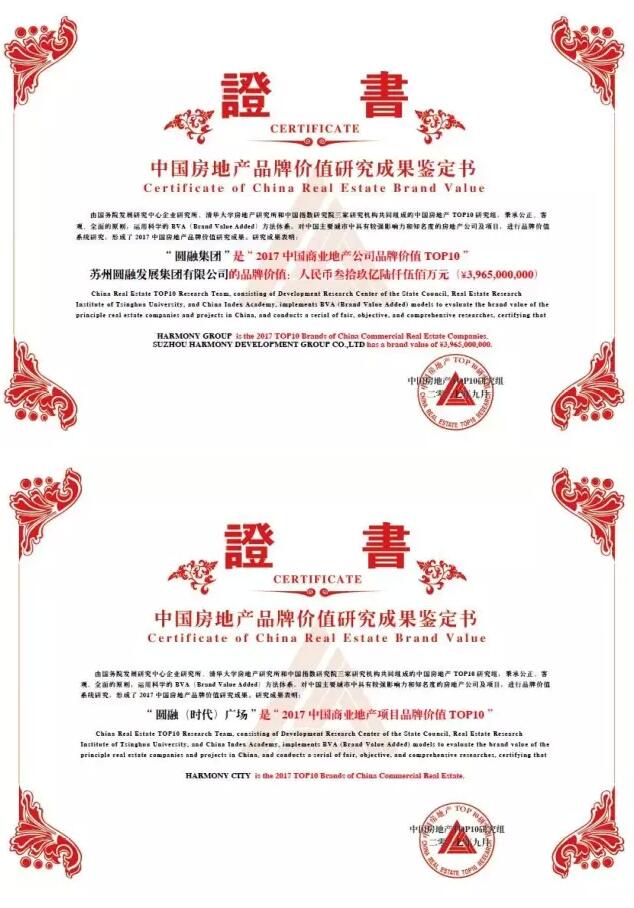 2017年9月14日,“2017中国房地产品牌价值研究成果发布会”在北京雁栖湖国际会议中心隆重召开。本次发布会由国务院发展研究中心企业研究所、清华大学房地产研究所和中国指数研究院三家研究机构共同主办。在本次发布会上,开云网页版·官方版在线登入荣膺“2017中国商业地产公司品牌价值TOP10”称号。由圆融集团开发的圆融(时代)广场荣获“2017中国商业地产项目品牌价值TOP10”称号。