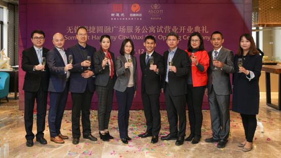 在苏州圆融发展集团副总裁、圆融商业物业管理有限公司总经理、圆融酒店管理有限公司总经理张立刚、雅诗阁中国华东区总经理暨中国区战略投资项目副总裁杜易修先生的共同启动下,无锡盛捷圆融广场服务公寓正式试营业。相信在雅诗阁杰出团队的努力下,无锡盛捷圆融广场服务公寓一定会成为跨国公司、本地企业商务居住的首选和无锡市场服务公寓的翘楚。