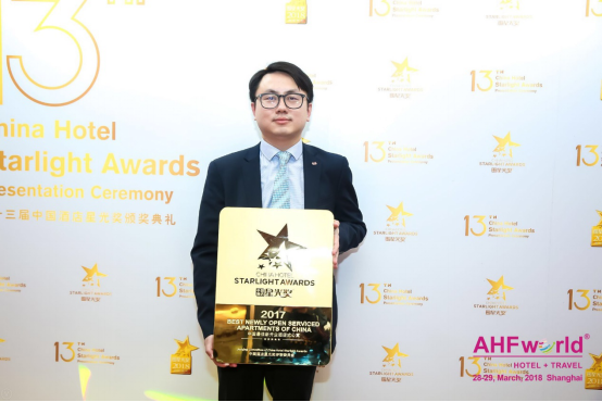 3月29日,无锡盛捷圆融广场服务公寓在第十三届中国酒店星光奖中成功摘得“中国最佳新开业服务公寓”奖项,无锡盛捷圆融广场服务公寓运营经理张晨先生出席了此次颁奖典礼并上台领奖。