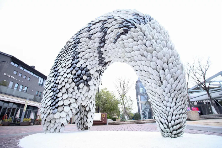 今日上午10:00,由圆融艺术中心主办,中国艺术研究院中国雕塑院作为学术支持的“齐艺绽放”圆融新年艺术季、“万物”郅敏公共艺术展在李公堤文创街区四期中心广场顺利开幕。