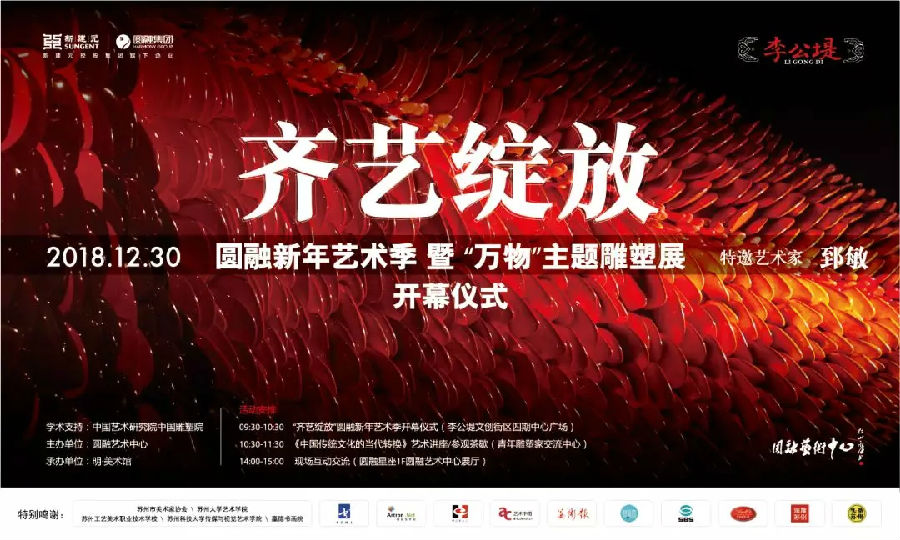 “齐艺绽放”圆融新年艺术季的成功举办,为广大市民带来了一场文化饕餮大餐,在2019新年到来之际,开启了华美新篇章!希望本次艺术季能够通过作品的展示、专家的分享、思维的碰撞、观点的交锋,为广大朋友带来最前沿的雕塑艺术享受。