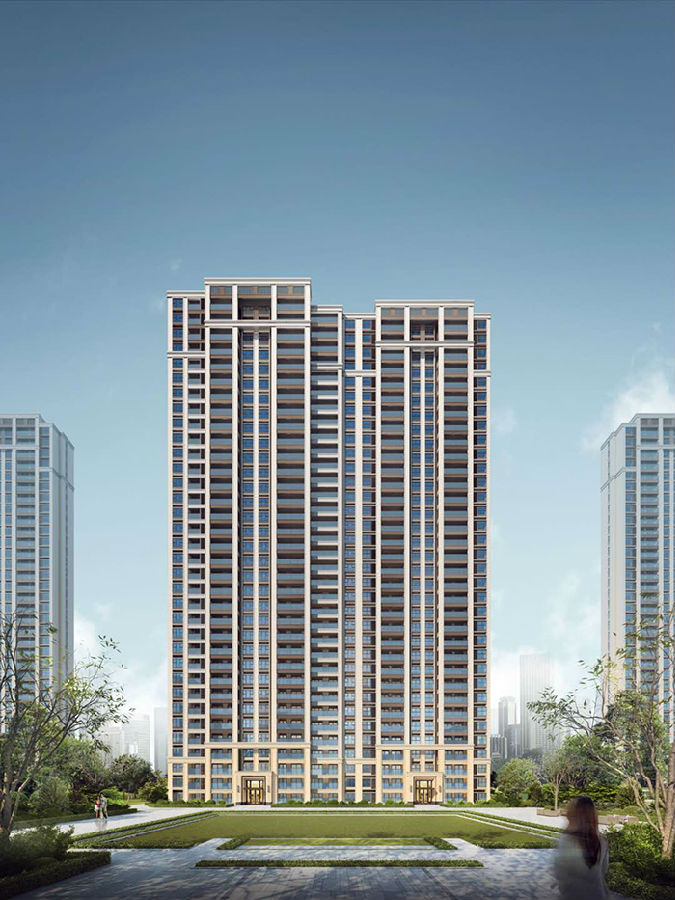 二期整体规划两轴四区,3大高层组团与洋房组团错落有致,板楼的设计保证了每栋楼接收最大光照,三段式新古典主义建筑立面经典而永不过时,六重景观层次,楼栋之间坚持景观尺度最大化,充分保证二期美观、宽奢、舒适。