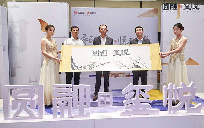 随后,卞文山先生在卷轴上按下印章,开启“圆融·玺悦”新品案名。圆融·玺悦,萃通城风华地脉,建树城市生活新美好,择址港闸市北新城风华地脉。近年来,港闸区市北新城在生态环境建设、快速路网优化,区域配套升级各方面都得到快速提升,区域价值逐渐体现。圆融.玺悦整体约20万平方米新中式低密度奢雅住区,在升级港闸区生态人居的同时,将会带来更品质、更格调的生活新方式。