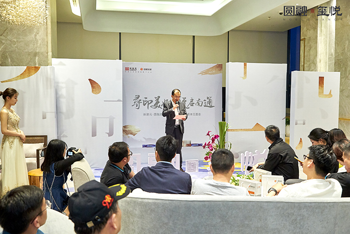 南通圆融开发总经理卞文山先生向来宾致辞。新建元圆融作为城市生活运营商助力城市发展,擎领城市生活新风尚。每匠造一件作品,不只是简单的复刻,而是在经典之上再筑经典。2019年是新建元圆融在南通深耕的第十年。十年来,新建元圆融连落三子,圆融广场、圆融堤调,时刻助力南通城市发展,担任城市时尚生活书写者的角色。此次将怀着更高的理想助力南通,布局市北新城核心地段,筑建圆融 “悦”系新中式奢雅住宅。