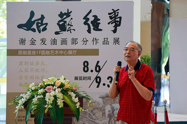 下午14时许,圆融艺术中心展厅早已被人群所挤满。每个人的脸上都挂满了对此次画展的期待!随着主持人的登台开场,谢金发老师的“姑苏往事”画展正式拉开了序幕!