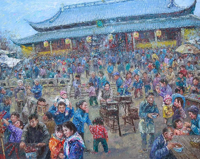 谢金发老师的作品中往往以和谐恬美的色彩、扑面而来的生活气息和浓厚的思乡之情,带给观者们极其强烈的共鸣。因此,观赏谢金发老师的油画,不仅仅是一种专业的学术交流,更是一种超越专业的情感交流。