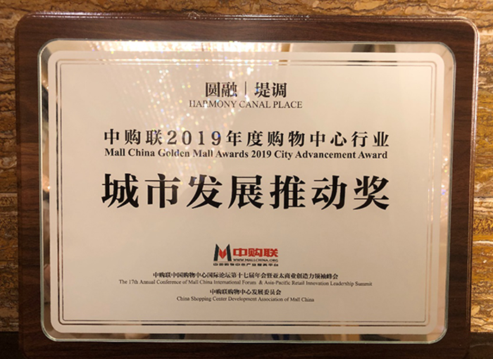 新建元圆融发展作为常务理事单位参会,圆融发展开发建设的“南通圆融·堤调”荣膺2019年度购物中心行业“城市发展推动奖”。