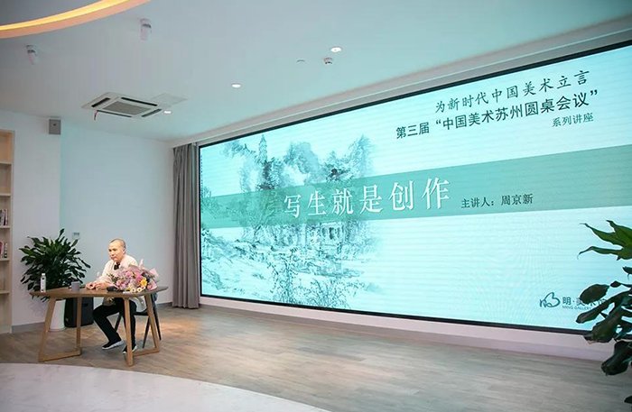 由中国美协副主席周京新教授主讲的“写生就是创作”主题讲座于9月3日下午在李公堤文创街区的明·美术馆举办。他结合近年在苏的写生作品,跟到场艺术家、艺术爱好者分享了其创作中的所思、所见、所感。