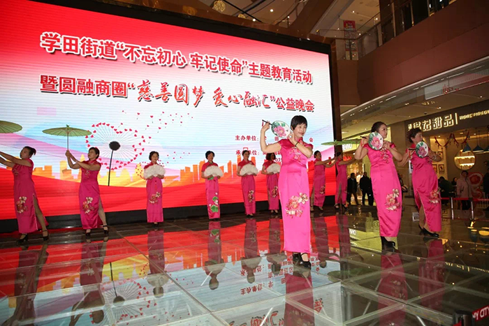 为了大力弘扬中华民族扶贫济困优良传统,宣传慈善事业,广泛发动企业党组织、个人参与到慈善公益活动中来,12月17日晚,由新建元南通圆融党支部、学田慈善会、南川园社区党委、居委会联合党总支承办的“不忘初心 牢记使命”主题教育活动暨圆融商圈“慈善圆梦 爱心融汇”公益晚会在南通圆融购物中心一楼中庭拉开了帷幕。学田街道党工委副书记胡建华为本次活动致辞,崇川区慈善会卢铭秘书长一同为“圆融商圈慈善服务站”揭牌。