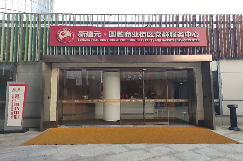 新建元圆融商业街区党群服务中心成立于2017年10月,坐落于圆融时代广场天幕东街,面积为720平方米,服务范围近1平方公里,涵盖圆融时代广场、圆融星座、诚品、久光、新光天地、李公堤等商业载体,已建立基层党组织5个,在册党员110名。党群服务中心内设“党群接待室”“党群活动室”“青年之家”“会议室”“母婴室”五个功能区,提供教育培训、法律咨询、活动联谊等服务,已经成为商圈内党员群众、商户、共建社区及学校开展交流活动的大本营。