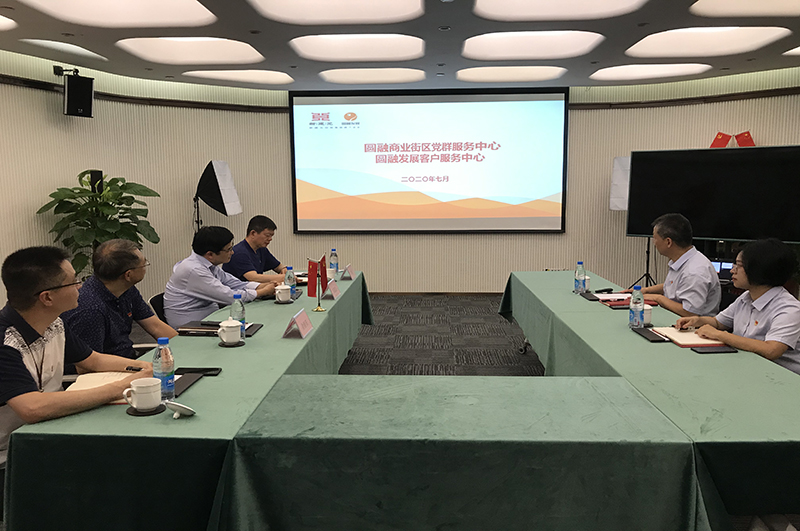7月7日下午,新建元圆融发展党委书记、总裁范醒磊带领圆融发展党委一行赴圆融商圈党委开展党建工作调研。范醒磊一行首先参观了圆融商业街区党群服务中心,并就商圈党建工作开展情况进行了座谈交流。座谈会上,范醒磊一行认真听取了圆融商业街区党委关于客服中心功能定位、人员架构、主要职能及整合商圈内外资源,创新党建与经营相融合的工作模式,助推整个商圈良性发展等方面的工作汇报。