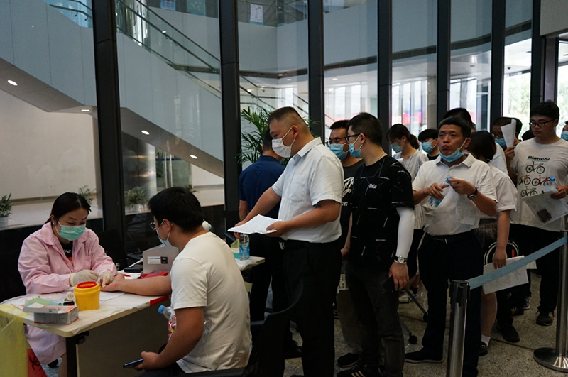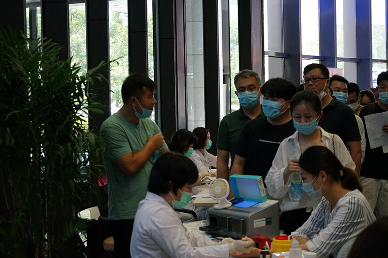 炎夏酷热,但仍挡不住大家奉献爱心的热情,长长的献血报名队伍仿佛源源不断的爱心汇聚成河,成为一道特殊的风景线。献血活动现场,为确保献血环境安全,医护人员对献血场所进行消毒,全程佩戴口罩,引导大家有序地登记、填表、测量血压、血液检查、采血,当看到那些充满爱意的血液流入一个又一个储血袋中,大家都露出了暖心的笑容,在这里A、B、O、AB,不再是简单冰冷的字母,而是代表着一份份希望。本次参与献血的员工中既有多次参加无偿献血的共产党员,也有第一次参与的普通群众,他们都以满腔的热情和乐观的心态,用实际行动为社会贡献着自己的力量。参加无偿献血的员工纷纷表示,通过无偿捐献自己的血液可以帮助那些急需救治的病人,是一项利国、利民、利己的善举,也是每个公民应尽的义务。