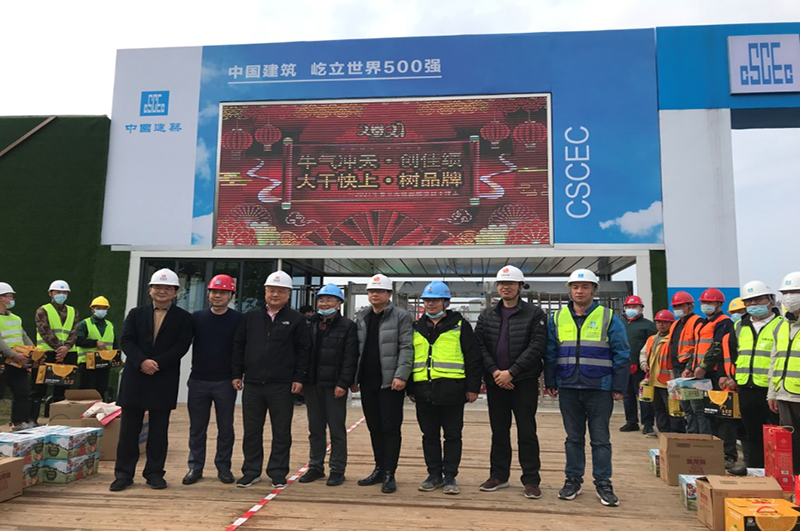 亢越一行深入施工现场,详细了解锡山圆融广场施工进度情况,现场查看春节保障,疫情防控、安全生产等工作情况,并给予了充分肯定;他说,大家积极响应号召,春节坚守岗位不返乡,为疫情防控和公司发展作贡献,向大家表示衷心感谢。同时,为仍在工作岗位的人员送去集团的关怀和温暖,带去了慰问品,让一线工作人员倍感温情。