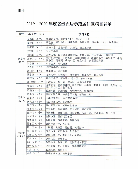 近日,经综合评审和公示,江苏省住房和城乡建设厅公布了2019-2020年度省级示范居住区名单,共评选出“省级宜居示范居住区”308个,其中新建元控股集团旗下无锡圆融开发运营的融禾花苑小区成功上榜。