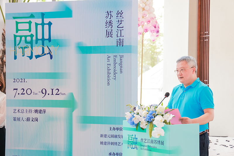 2021年7月20日,由新建元控股集团旗下圆融发展、姚建萍刺绣艺术共同主办的“融—丝艺江南苏绣展”在圆融艺术中心展厅启幕。园区宣传和统战部副部长何雯,江苏省工艺美术学会会长王建良,苏州民间文艺家协会主席叶正亭,新建元控股集团党委副书记、总裁亢越,圆融发展党委书记、总裁范醒磊,圆融发展党委副书记、副总裁俞继东等出席开幕式。
