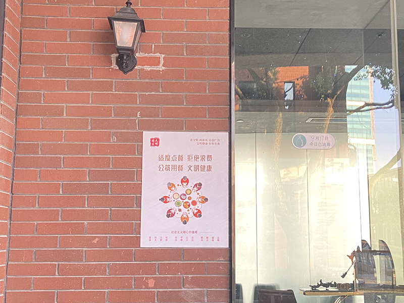 首先,对于餐饮店铺,检查工作小组要求更换破损、褪色、陈旧的文明餐桌贴纸,张贴文明就餐宣传海报,同时还检查了店内健康证、营业执照、食品经营许可证、市容环卫责任书等的位置摆放,对店内消杀记录本和体温记录本也统一规定了摆放位置。