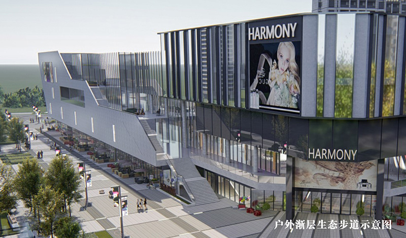 从建筑外观来看,商场外立面以幕墙打底,配以高级灰的色调,体现生活的仪式感,营造精致与优雅。