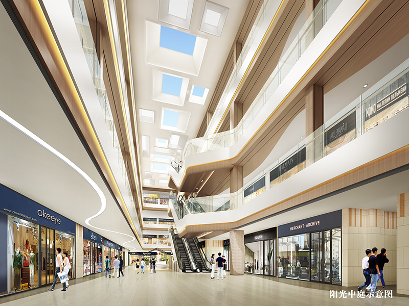 室内连续通透的阳光中庭空间,充分让人感受到简约而不失优雅的时尚都市生活氛围。无柱设计保证了中庭通透开阔的视野。