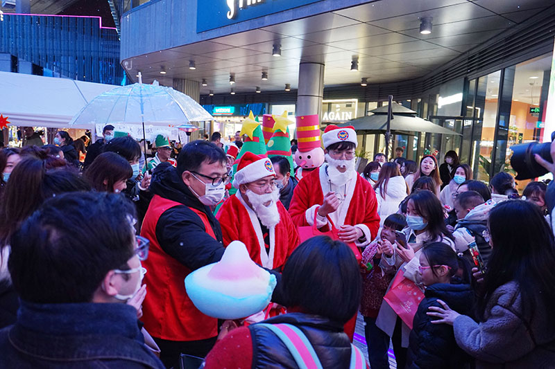 “请问扭蛋机怎么玩”?“圣诞有什么活动?”“天幕几点播放”“游乐设施在哪买票”“天幕互动怎么抽奖”……顾客们询问的各种问题 ,志愿者们都面带笑容,耐心解答。虽然气温骤降至零度以下,但是来回穿梭的“红马甲们”丝毫不为所动,坚守岗位,积极热心服务,成为天幕下的一道美丽的风景线。此次志愿活动完满结束,也得到了项目及领导们的一致好评和认可。