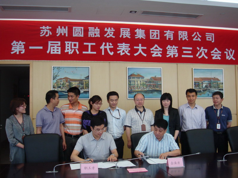 大会先行讨论审议了圆融集团《集体合同》,与会代表一致认为:《集体合同》对职工的切身利益进行了明确、具体的规定,反映了广大职工利益诉求,是以人为本管理理念最好体现。集体合同的实施,对激发圆融集团广大职工主人翁责任感,调动职工工作热情,实现集团总目标起到积极的促进作用。经无记名投票予以通过后进行了签约仪式。签约仪式上圆融集体公司方首席代表财务总监刘东军与职工方首席代表童欣进行了签约。