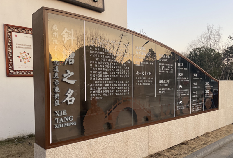 圆融发展自2022年5月开始启动“苏州市地名文化遗产保护示范街区” 申报工作, 从“斜塘之名”“斜塘风物”“斜塘风情”“斜塘风华”“斜塘堤桥”“斜塘寻古”“斜塘新篇”七个方面推动街区申报成功落地,将历史悠久的斜塘在地文化与多元创意相融合,织就文旅商融合“双面绣”。