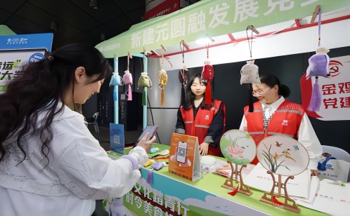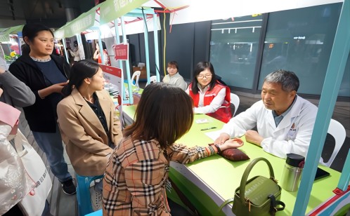 在“感受非遗魅力,传承中医文化”服务摊位上,新建元圆融发展党委邀请了商圈商户雷允上医师驻点,免费为市民群众把脉、健康问诊,不仅普及了中医文化,还让市民群众近距离感受中医在治疗、预防、保健、养生等方面的独特魅力。活动现场,党员代表们有序引导来往市民群众搭脉问诊,中医搭脉体验赢得了市民群众的一致好评。摊位还宣传了国家级非遗项目——六神丸制作技艺,以及两项江苏省非遗项目——膏方制作技艺、泛丸制作技艺等知识。