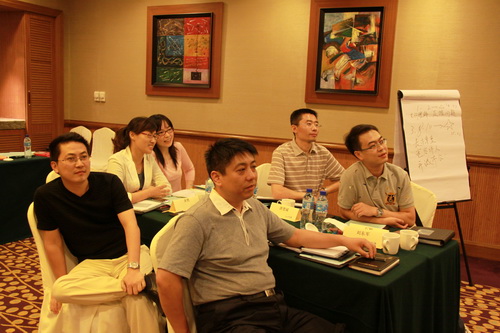 一开场,董老师就与大家以同学相称,随后通过深入浅出的讲解、发人深思的多媒体影像和激发脑力的小组讨论,同时穿插生动的激励游戏,让学员深深沉浸在浓厚的学习氛围中。第一天培训即将结束时,董老师在播放了马丁·路德·金“I have a dream”的演讲短片后,请各小组以圆融集团为主体,创作各自心中的梦想并上台演讲。四个小组纷纷拿出看家本事,献计献策,拟出了振奋人心的演讲稿,或抒情或激昂的向大家宣告本组的“梦想”,让观者在赞叹之余也深刻体会到大家对圆融集团的感情。