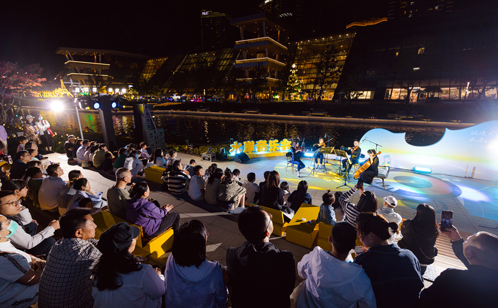 音乐会现场,水岸景观与音乐艺术交相辉映,构成了一幅动人的城市画卷。悠扬的旋律随风飘扬,与波光粼粼的水面、灯火阑珊的夜景融为一体,营造出一种城市与自然和谐共生的美好氛围。市民们或驻足聆听,或漫步其间,尽情享受着这份难得的宁静与惬意。
