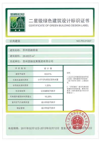 圆融星座通过国家二星级绿色建筑设计标识认证
