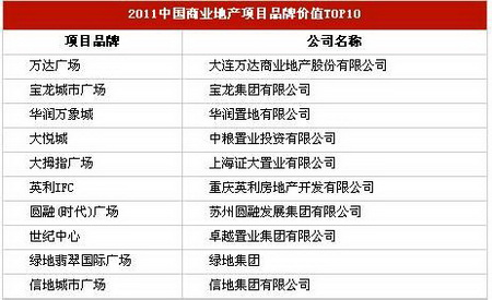 来自苏州的圆融集团以“创造影响力、为城市加分”为己任,造城兴市,成功打造了圆融时代广场、李公堤等一批在中国具有代表性的商业地产项目,在引领中国新城区商业地产发展、引导时尚休闲生活方式,发挥了重要作用。经过国务院发展研究中心企业研究所、清华大学房地产研究所、中国指数研究院的数据分析,圆融集团企业品牌价值评估值超过11亿元,荣登“2011年中国商业地产公司品牌价值TOP10”榜单,位列第七。同时,以圆融时代广场、圆融星座、南通圆融广场为代表的“圆融(时代)广场”商业地产项目品牌,以优秀的产品品质和强势的品牌影响力,为提升城市形象加分加码,凭借领先的产品品质和优异的服务水平打造都市综合体。项目与万达广场、宝龙城市广场、大拇指广场、大悦城等一同荣登“2011中国商业地产项目品牌价值TOP10”榜单,位列第七。