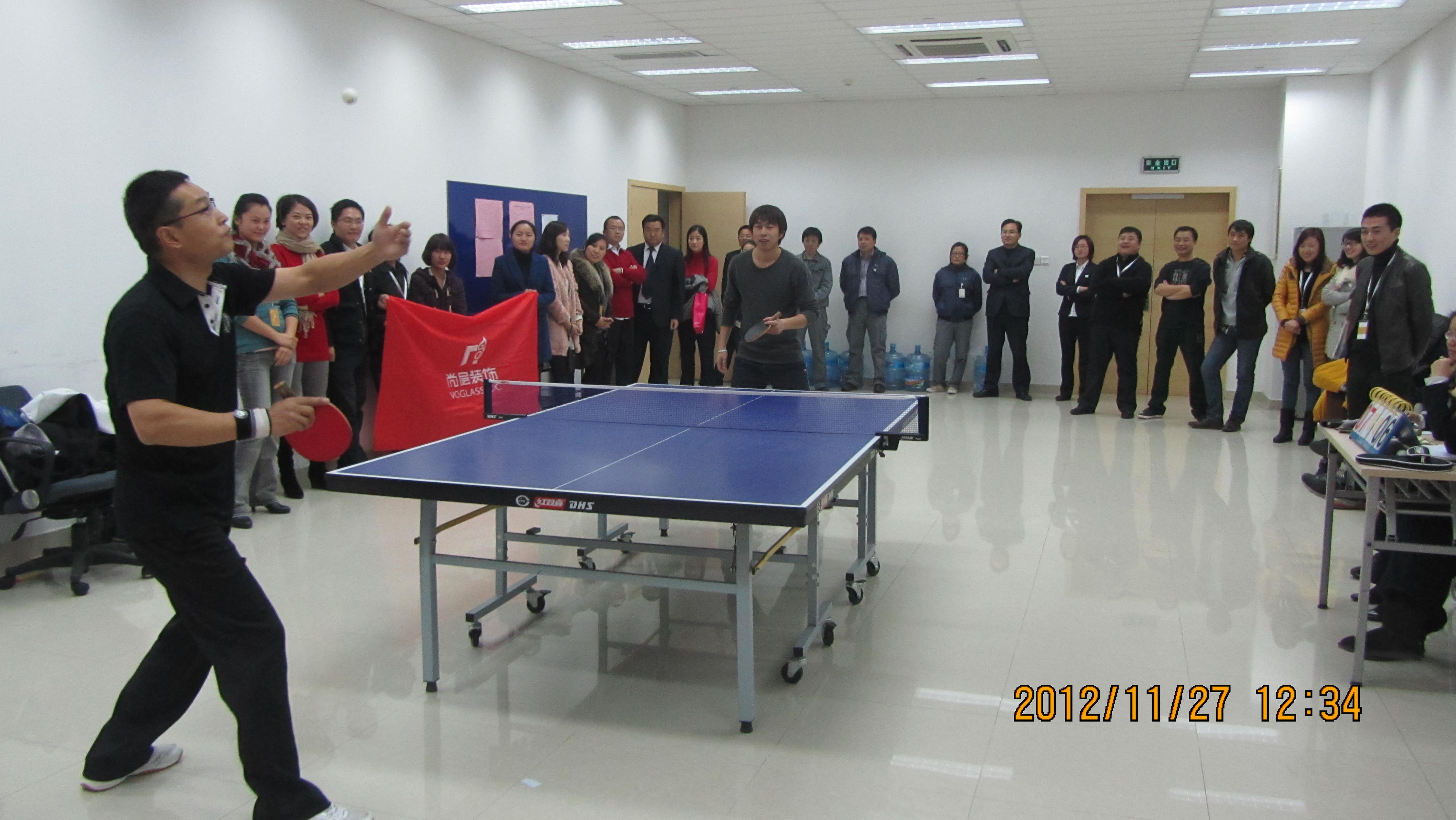2012年11月7日中午12:15,圆融时代天阶第二届客户乒乓球联谊赛在时代天阶项目活动室正式拉开帷幕,业主代表广运机电(苏州)有限公司邱国维先生和熊燕小姐为本届乒乓球赛精彩开球!