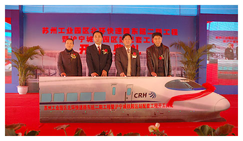 2月12日,苏州工业园区北环快速路东延二期暨沪宁城际铁路园区站配套工程举行开工典礼。北环快速路东延二期工程总投资18亿元,沪宁城铁园区站配套工程建安费用为2.6亿元,工程将于2010年6月竣工,以确保2010年7月通车的沪宁城铁发挥对园区的辐射带动作用,未来从园区到上海也将缩短至20分钟。苏州市委常委、园区工委书记马明龙,副市长周玉龙,市政协副主席府采芹等领导启动了该项工程。