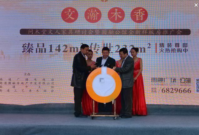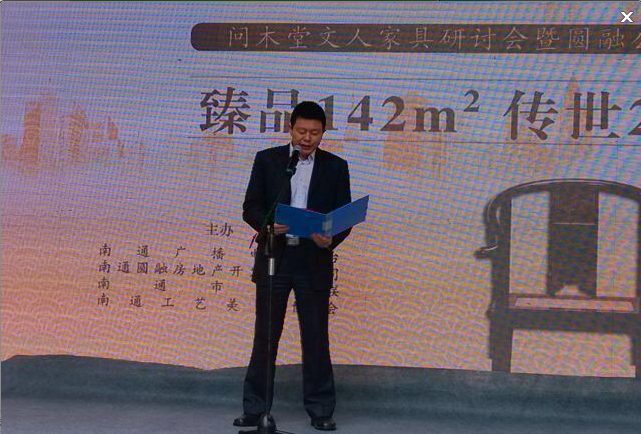 在悠扬婉转的民乐四重奏中,活动正式拉开帷幕。开幕式采用典雅、中国风式的风格,让身处繁华喧嚣的都市人为之而倾倒。 在开幕式上,南通圆融房地产开发有限公司总经理薛峰先生的诚挚致辞触动了现场千余位嘉宾的心。他与现场嘉宾分享了南通建城千年的经济文化发展史,表达了举办此次文人家具展活动的初衷与愿景,同时精简介绍了吸引众人眼光的南通首个高端城市综合体——圆融广场项目,3分钟的致辞声情并茂、妙语连珠,博得现场一片热烈掌声!