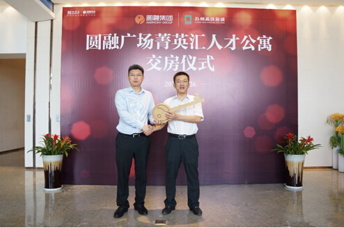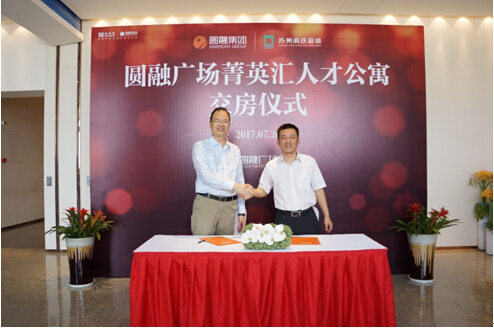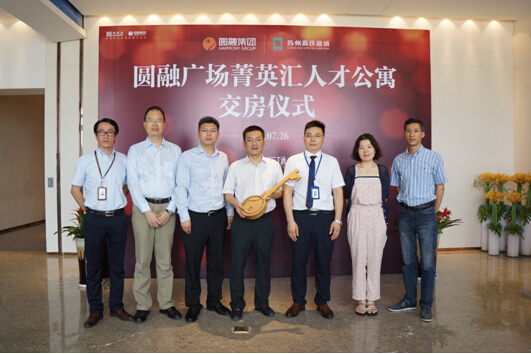 2017年7月26日,新建元控股集团旗下圆融发展集团与苏州高铁新城管委会合作的菁英汇人才公寓交付仪式在圆融广场菁英汇大堂举行。高铁新城社会建设局局长杨建伟、圆融集团副总裁张立刚、高铁新城圆融广场项目总经理周国忠等领导出席了交付仪式。