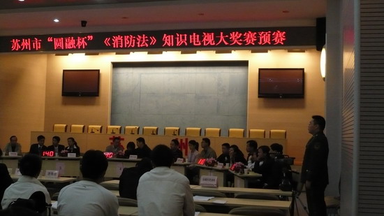 4月15日上午,由圆融集团冠名的“圆融杯”《消防法》知识电视大奖赛预赛在园区消防支队一楼会议厅开赛,金阊区代表队、新区代表队等7家代表队参赛,各参赛队队员积极参与,活动现场气氛十分活跃。